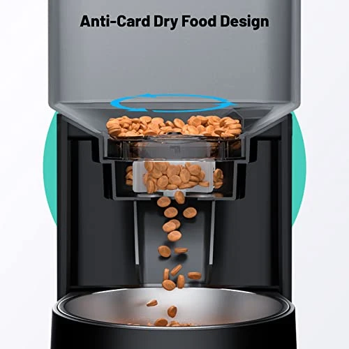 - Anti-Card Dry Food Design: Cat automatic feeders using the latest grain split design, equipped with soft silicone sweeping piece, each time the separation of equal amounts of grain, to avoid clogging, not card dry food.