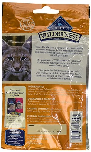 - Blue Buffalo Wilderness Chicken & Turkey soft-moist cat treats are the prefect way to cater to your feline’s inner carnivore.