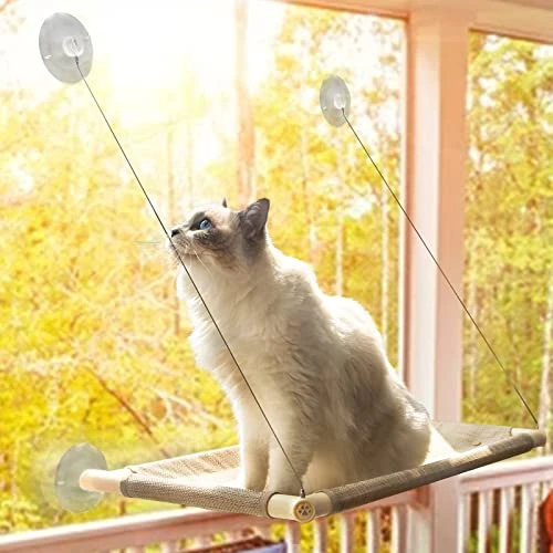 - Breathable Teslin Mesh: There is no strange smell for the window cat perch, and safe for our cat. The breathability of the Teslin material will keep the cat’s body temperature from overheating, and putting a blanket in winter will be its warmest window cat bed.