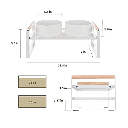 - – Stand Dimensions: LxWxH/13.8 x 7 x 5.5 inches. – Bowl diameter 5.5 inches, 2-1/4 inches tall. – Gross weight 1.79kg (3.94lb). – 3 levels of height can be adjusted to 0.0’’, 1.57’’, and 3.5’’.