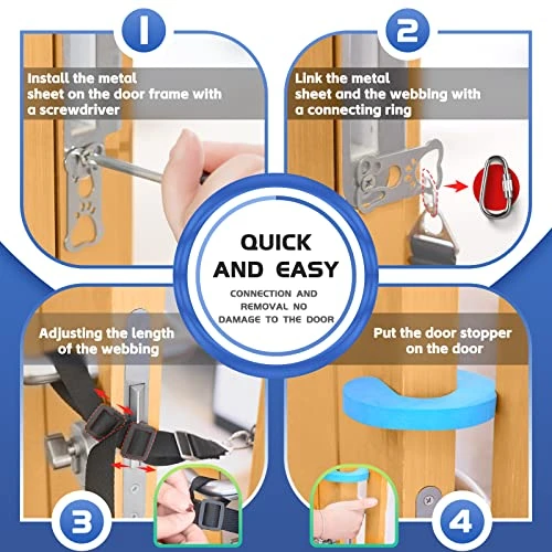 - 【Sturdy and Stylish Material】: The CJPET Door HolderCJPET Door Holder Latch is made of high-quality nylon webbing, stainless steel accessories, and features a soft door stopper to prevent accidental injuries.
