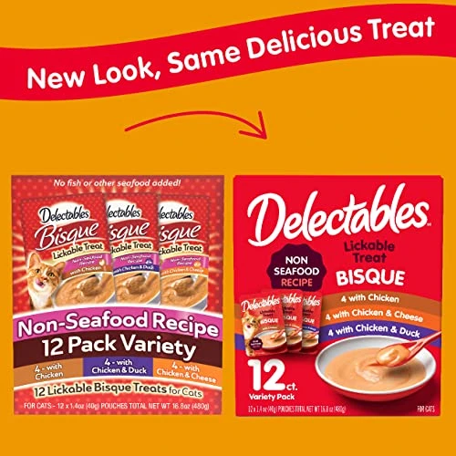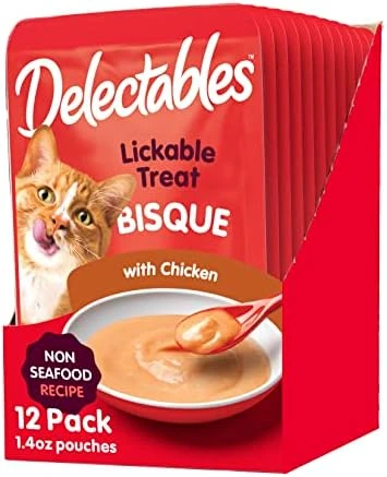 - Delectables Non-Seafood Lickable Treats are available in a Stew & Bisque texture with a variety of chicken flavors.