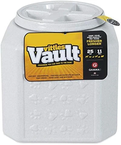 - Proudly Made in the USA: Unlike many other pet food storage containers, Vittles Vaults are manufactured in the USA with quality and craftsmanship you can trust. Capacity is based on the shape and density of kibble. When in doubt; round up to the next size