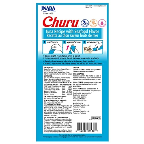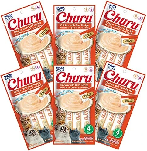 - KEEP YOUR FELINE HYDRATED WITHOUT ADDING CALORIES: Each delicious, creamy Churu tube contains 91% moisture and only 6 calories (a tenth of the calories of traditional dry cat treats), which makes it a healthy snack you can feel good about feeding