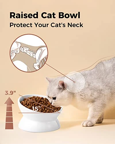 - 🧸 Tilt Angle Design: 5 inches in width, the tilted cat food bowl keeps food piled or falls to the center, it helps keep the food from being pushed off the bowl, easy for your cat to eat. Perfect for flat face cats.