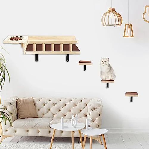 - 【Space Saver】Looking to provide a play and dining area for your cats without sacrificing precious floor space? Our cat wall furniture set is the perfect solution! It serves as an ideal gift for your beloved feline companions while offering a convenient and space-saving option for their needs.