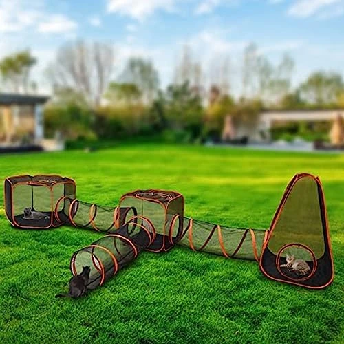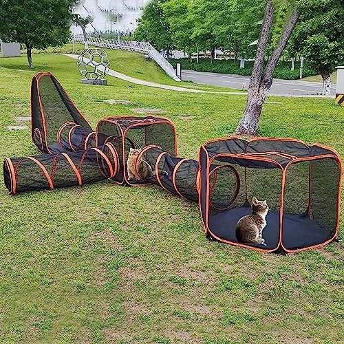 - 【WHAT YOU GET】 1 Hexagon Cat Tent, 1 Square Cat Tent, 1 Cone Cat Tent, 3 Pet Tunnels, 1 Portable Carry Bag, 20 Fixing Pegs and Friendly Customer Service.