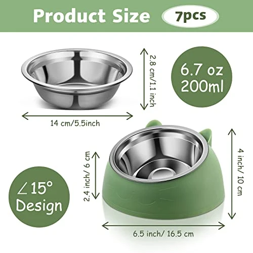- Safe Material: the cat dish for food is designed with oval curved surface and cute ears, it looks lively and cute, these angled cat food bowls are made of quality stainless steel and PP materials, safe and sturdy, no odor smell, easy to clean and not easy to rust, which can be applied for a long time