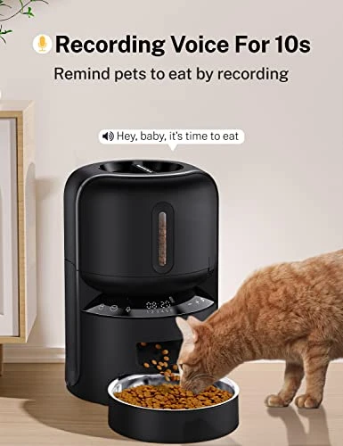 - 【Warm Recording Design】: The feeder can record a 10-second customized voice message call to remind your pet to eat, even if you are not at home, your pet can feel your company, and you can turn off the sound of the recorder.