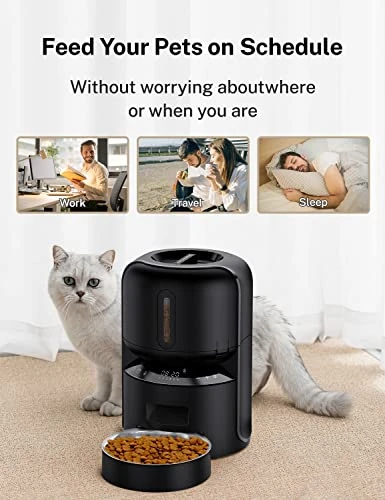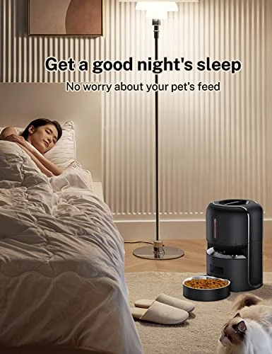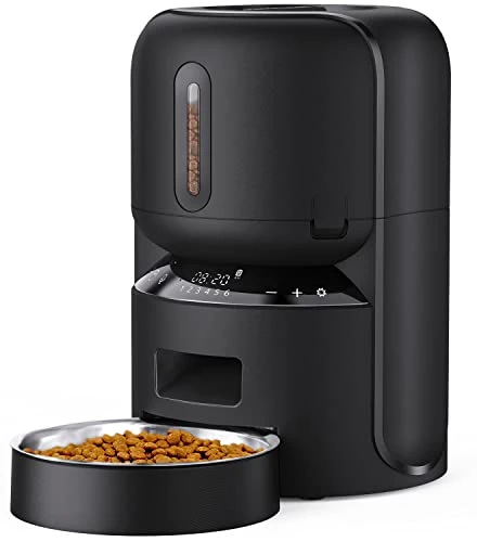 - 【Flexible Fiming Feeding Setting】: Easy to set the feeding time, dividing the daily feeding amount into multiple meals to avoid indigestion of pets and can set up 1-6 meals every day, with a maximum of 50 servings (20 ml each), which can help your pet develop good eating habits. The feeder also comes with a manual feed button to easily reward your pet.