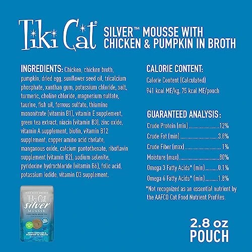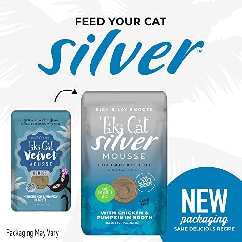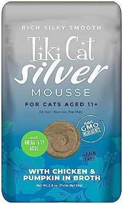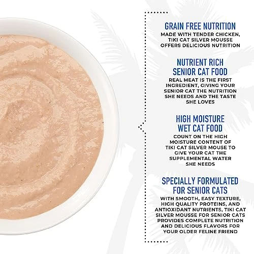 - SPECIALLY FORMULATED FOR SENIOR CATS – With smooth, easy texture, high quality proteins, and antioxidant nutrients, Tiki Cat Silver Mousse for Senior Cats provides complete nutrition and delicious flavors for your older feline friend.