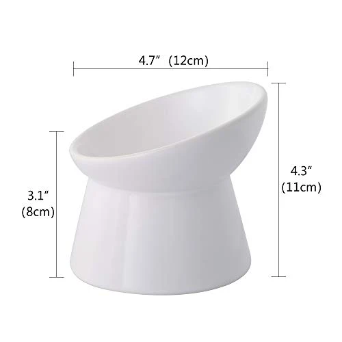 - 【INGENIOUS DESIGN FOR SCIENTIFIC FEEDING】:The elevated pet Bowl is high enough and the cats don’t need to bend their heads too much to feed, prevents vomiting. Especially better for elder cats’digestion.Tilted 15 degree design to protect the cat cervical spine.