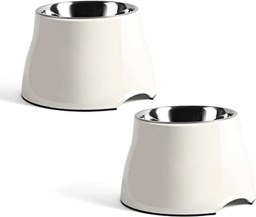- 🐶【Pretty Sturdy with Nice Thick Non-slip Bottom】Stylish stainless steel dog bowls within melamine stand is sturdy than other ordinary plastic or stainless steel puppy bowls. Raised dog feeder fitted with fully covered in silicone non-skid strips under the bottom, the pet bowl stays in place while your pet eats. With an anti-tipping design, you won’t have to worry about spills when your pet gets overly enthusiastic at dinner time